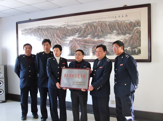我公司按法誠信經(jīng)營,嚴格遵守國家財務(wù)會計制度、稅收法規(guī)、國家其他財經(jīng)法律法規(guī),2010年度上繳國、地稅金2011萬元,根據(jù)國家稅務(wù)總局《納稅信用等級評定管理試行辦法》的規(guī)定,現(xiàn)考核評定我公司的納稅信用等級為A級,并從2011年1月1日起,我公司就可以享受相應(yīng)的激勵與優(yōu)惠政策。2010年12月30日,常州市國、地稅務(wù)局局長及鄭陸稅務(wù)所領(lǐng)導(dǎo)親自來我公司頒發(fā)了獎牌。